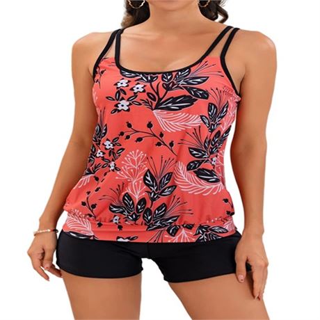 B2prity Tankini Bathing Suits for Women Tummy Control Two Piece Swimsuits Blouson Floral Print Swim Tank Top with Boy Shorts